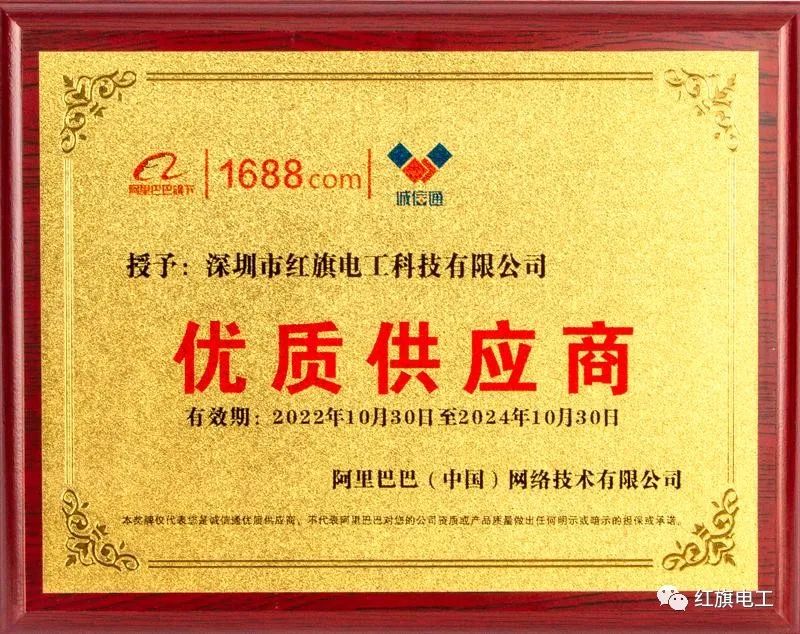 2022年9月,深圳市紅旗電工科技公司榮獲1688“優(yōu)質(zhì)供應(yīng)商”的稱(chēng)號(hào).....